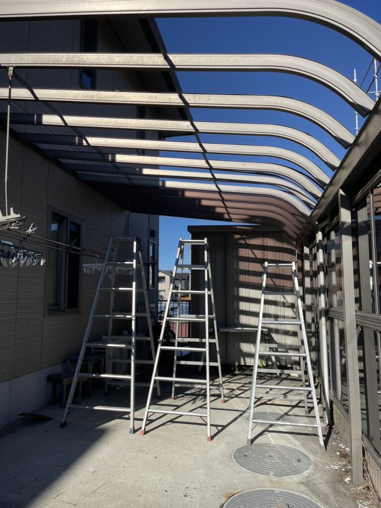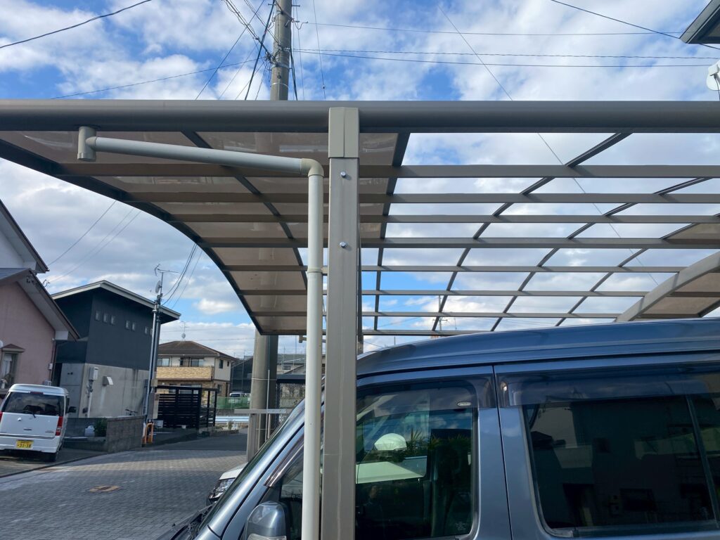 ⻯巻被害で屋根や壁等の程度の差は有りましたが、今回ご依頼の K 様邸のカーポートの屋